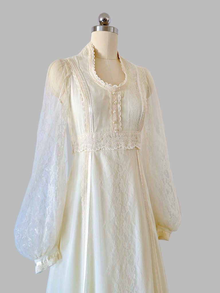 1970s Gunne Sax Victorian Cream Weddding Gown
