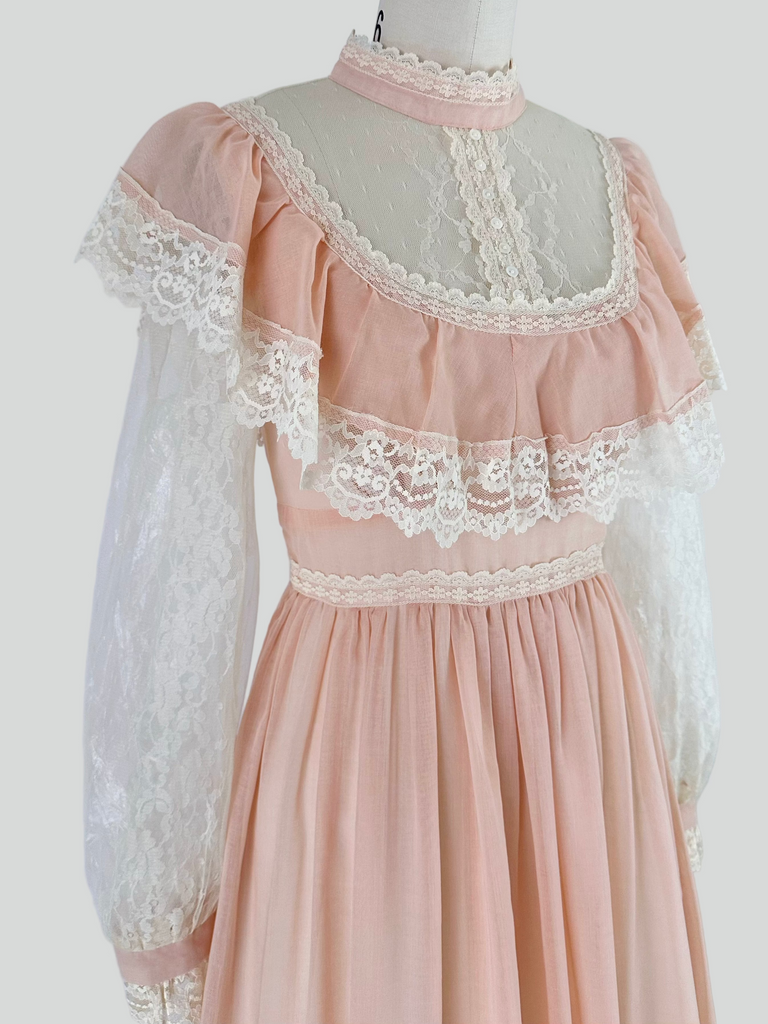 1970s Gunne Sax Dress in Blush Rose & Cream Lace