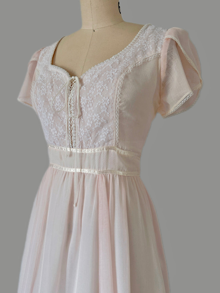 1970s Gunne Sax Blush Pink Lace-Up Maxi Dress