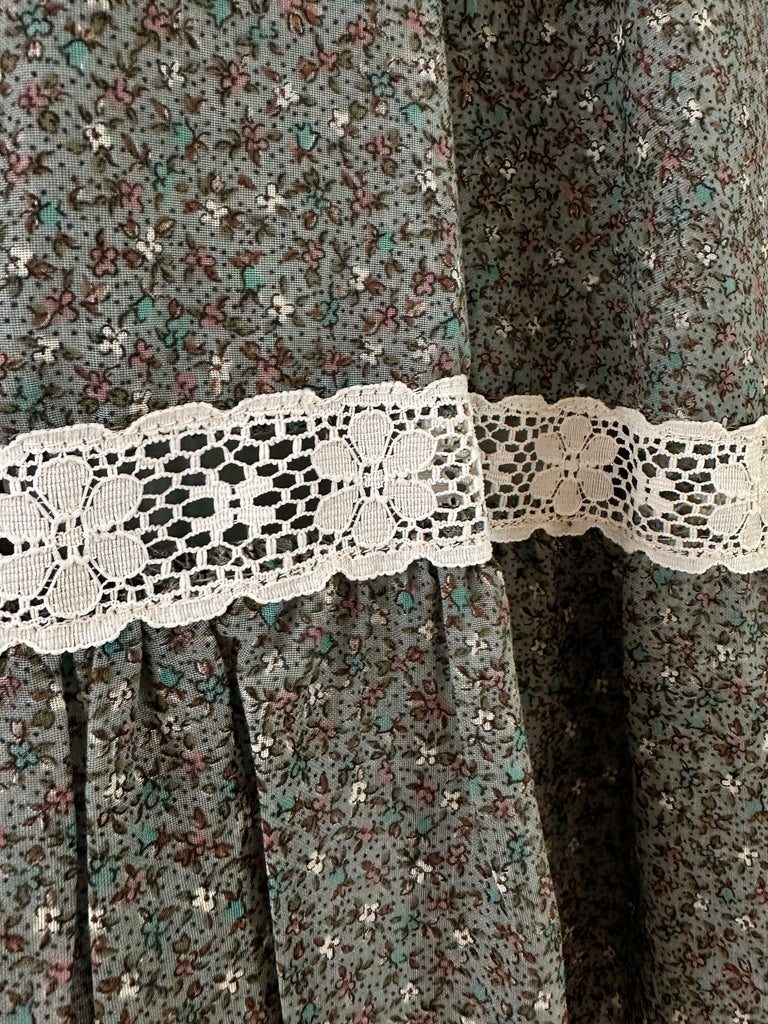 1970s Sage Floral & Ivory Lace Sundress