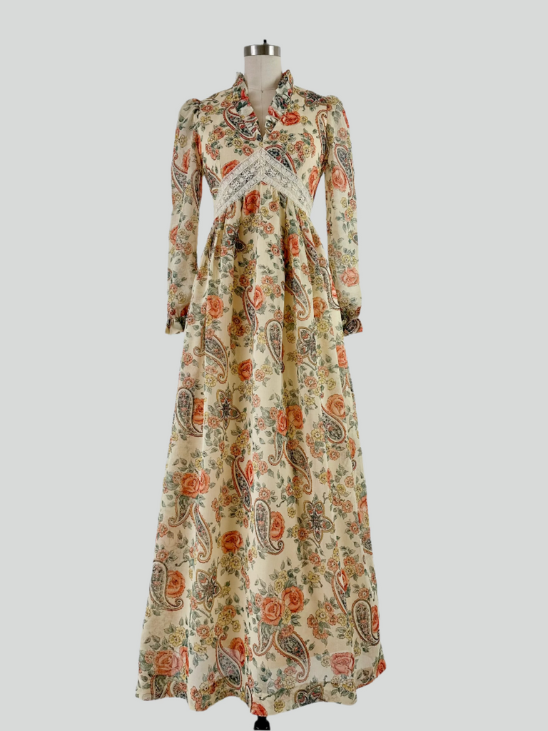 1970s Vintage Floral & Paisley Maxi Dress