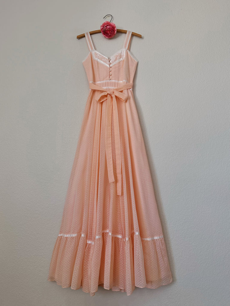 1970s Gunne Sax Peach Maxi Dress