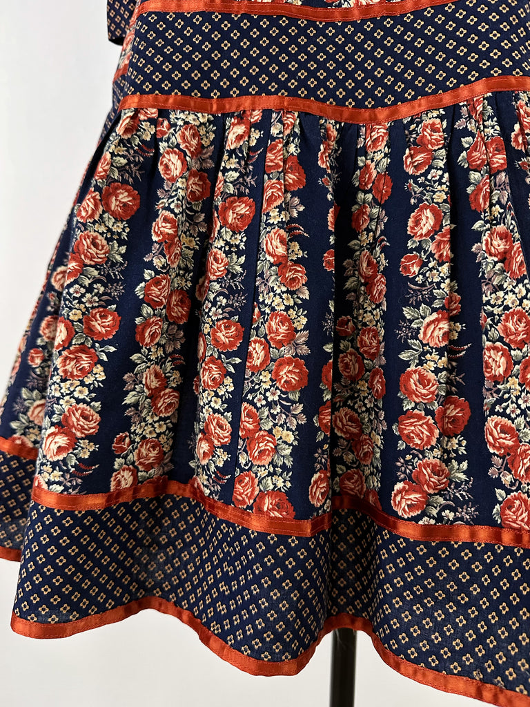 1970s Gunne Sax Cabbage Rose Cotton Dress